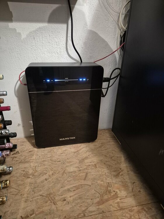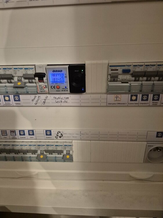 Et voilà la suite, bientôt la fin (Jusqu'à la prochaine fois :)). Une... batterie : Bon, j'ai fais simple, pas de grosse installation cette fois, car je voulais aller vite. Du coup j'ai profiter d'une baisse de prix + promo, et j'ai pris la Marstek Venus E donc je parlais dans un autre topic : -Venus E : 5,12 kWh -Compteur CT002 de chez Marstek -FDP Le tout 1300 € livré. Pour l'installation : Ultra simple, même si j'ai relié la prise Grid directement dans le tableau électrique qui est juste dessus (J'ai coupé le câble d'origine et mis sur un disjoncteur à part 16A, comme ça c'est propre). CT002 directement dans le tableau avec sa pince, clic clic sur l'appli, et voilà que je consommais l'énergie de ma batterie On verra le vrai résultat demain, quand il fera beau, car peu de solaire ce jour. Le seul gros point à voir ce sera la partie concurrence entre la charge de la batterie et mon routeur solaire PowerReducer, on verra ça demain. Pourquoi j'ai pris ça : Comme dit la simplicité et le gain de temps. Avec mes ajouts de panneaux, je commençais à avoir trop de PROD le week-end dernier, du coup... bah clic clic et j'ai acheté tout ça. Bien sur on est loin de tout ce qu'on peut faire avec une grosse installation type Victron etc etc, mais franchement je suis bluffé : Rapport qualité/temps d'installation/prix, c'est tout de même sans commune mesure. Et surtout c'est évolutif, je peux en ajouter 2 autres pour passer à plus de 15 kWh et même ajouter leur SmartBox (349 €) et là cela permet de sécuriser la maison complète et monter à 7,5 kw de puissance dispo. L'autre gros avantage avec cette 1ère batterie, elle a de suite une prise UPS en sortie full autonome qui bascule en auto (15ms) si coupure Enedis, là où les Arsun coupent complétement. Et chez moi cela va être ultra bénéfique : Je vais du coup retirer mon gros onduleur de la baie info (Un Eaton Pro 5kva) qui consomme un max, mettre un tout petit UPS APC/EATON de 700va en sus (On ne sais jamais), et du coup cela fera une économie immédiate de prêt de 150 wh !! Voilà, après qques heures, rien à redire, c'est top ! A suivre dans les prochains jours, je vous ferai un petit up. -