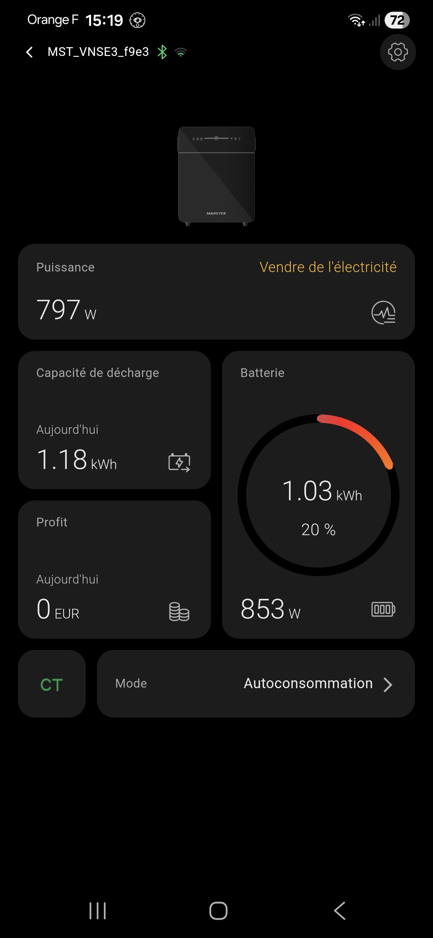 Oh une Marstek ! Tu regarderas si tu peux calculer le rendement de charge/décharge de la batterie ? C'est c'est une information qui est systématiquement oubliée sur les batteries Plug & Play. -