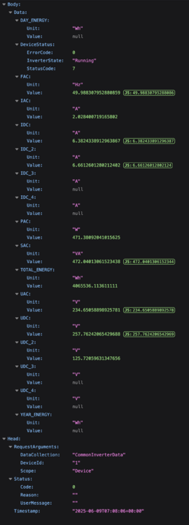 Hi @TitiXsi, To refresh token you need to store serial ID of the Envoy and login credentials to refresh token. With that you first request session ID: local url="https://enlighten.enphaseenergy.com/login/login.json" local payload='{"user":{"email":"'..self.userName..'","password": "'..self.userPassword..'"}}' self.http:request(url,{options={checkCertificate=false,method='POST',headers={['Accept']='application/json',['Content-Type']='application/json',},data=payload,timeout=10000}, to get new session ID. After you get session ID then you call: local url="https://entrez.enphaseenergy.com/tokens" local payload='{"session_id":"'..self.sessionID..'","serial_num":"'..self.serialNO..'","username":"'..self.userName..'"}' self.http:request(url,{options={checkCertificate=false,method='POST',headers={['Accept']='application/json',['Content-Type']='application/json',},data=payload,timeout=10000}, to get token. As you can see from my code you do need session ID, serial NO and user name to get new token. NOTE that if if any of the above request fails then there must be delay of at least 5 minutes before you can try to get new session ID and the token again. Not to wait for long time I reduced lifespan of the token to few hours for testing purposes. I can do that because I store time when token was generated and then I add time until when it must be refreshed.2 points