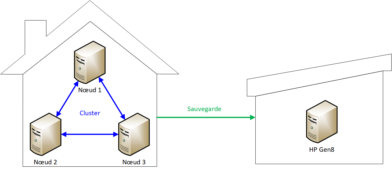 Environnement logiciel Je l'ai évoqué précédemment, il me faut un hyperviseur installé directement sur chaque serveur pour faire fonctionner des VM de tous types. Et l'une des VM sera dédié à la fonctionnalité NAS (partage de fichiers), avec les disques durs capacitifs. Hyperviseur J'ai retenu Proxmox Virtual Environnement. Cela fait longtemps que je surveille cette solution, il y a quelques années je ne la trouvais pas assez aboutie pour une mise en production, surtout venant d'une solution éprouvée comme VMware, mais je trouve maintenant que ça évolue dans le bon sens. Les fonctionnalités sont là (snaphots, réplication, clustering, etc), les outils pour le management et la supervision se sont industrialisés. En outre, c'est basé sur une distribution Linux Debian, OS sur lequel je suis à l'aise depuis de très nombreuses années puisque c'est ce que j'utilise dans presque toutes mes VM. Pour les sauvegardes, ils proposent Proxmox Backup Server J'installerai PBS sur mon Gen8 au garage (dans une VM en fait, puisqu'il y aura aussi PVE installé nativement dessus pour gérer plusieurs VM), et il permettra d'accueillir les sauvegardes des VM provenant du cluster de la maison. Pour le stockage des VM, le datastore par défaut repose sur un filesystem ZFS, qui est certainement le filesystem le plus robuste disponible actuellement sur le marché. Plus précisément, il s'agit de la version open source OpenZFS qui est un dérivé libre du filesystem ZFS initialement développé par la société Sun Microsystems pour son OS UNIX Solaris, célèbre dans les années 2000, puis rachetée (et tuée) par le grand méchant Oracle. ZFS propose nativement des mécanismes de snapshots et réplication entre plusieurs nœuds d'un cluster, mais c'est de la réplication asynchrone, c'est à dire que les écritures de données sont répliquées avec un certain délai (généralement quelques secondes). Malheureusement, cela ne convient pas à mes 2 besoins prioritaires de sécurité des données et haute disponibilité des données. En effet, en cas de plantage pendant une écriture, celle-ci n'aura pas eu le temps d'être répliquée vers les autres nœuds, et les données sont alors irrémédiablement perdues. En outre, le retard de réplication empêche la haute-disponibilité dans le cluster, c'est à dire la possibilité pour une VM de redémarrer immédiatement et automatiquement sur un autre nœud en cas de crash du premier. Il faut alors se tourner vers une solution permettant la réplication synchrone des données entre les nœuds du cluster, et cela est possible car Proxmox supporte nativement CEPH. On parle alors de solution hyperconvergée (HCI), digne de ce que peuvent proposer des solutions professionnelles et ultra couteuses comme VMware vSAN, ou Nutanix par exemple. Je reviendrai ultérieurement sur les implications matérielles du choix de CEPH, car elles sont nombreuses... et couteuses ! NAS J'ai retenu TrueNAS, et plus particulièrement la partie logiciel libre TrueNAS Scale (également appelé TrueNAS Community Edition, son ancien nom). Les gros avantages de TrueNAS Scale sont à mes yeux : Gratuit Un développement et une communauté active Basé sur la distribution Linux Debian, que encore une fois je maitrise bien Utilise le filesystem robuste OpenZFS (voir les avantages que j'ai décrit un peu plus haut) Contrairement à Synology SHR (RAID maison avec ext4/brtfs), j'ai suffisamment confiance dans ZFS pour monter une grosse grappe RAID avec l'ensemble de mes disques. Par rapport à mon existant (plusieurs disques indépendants), cela m'apportera une plus grande simplicité de gestion (un Pool unique pour l'ensemble des données). Ensuite, ce sont les datasets qui me permettront d'organiser mes données et les différents partages réseaux. En revanche, étant donnée la taille des disques que je prévois d'utiliser (24 To), et le risque significatif de panne d'un second disque pendant la reconstruction (et donc la perte de l'intégralité des données), hors de question d'utiliser un seul disque de parité (de toute façon plus personne de censé ne fait ça depuis longtemps, cf le vieil article "Why RAID 5 stops working in 2009" qui a malheureusement disparu d'Internet. Donc je mettrai 2 disques de parité, on parle alors de RAIDZ2, équivalent au RAID-6 bien connu. Cela aura bien évidemment un cout, égal à 2 disques "inutilisés" d'un point de vue capacité utile, mais c'est le prix à payer pour la sécurité des données. Comme pour la sauvegarde des VM évoqué précédemment, j'installerai également une seconde instance de TrueNAS dans une VM sur mon serveur de secours au garage pour accueillir les sauvegardes des données. ZFS permet de réaliser des snapshots en local, puis de répliquer les sauvegardes sur l'autre TrueNAS, tout cela de façon très performante, ce qui sera une solution nativement intégrée pour la sauvegarde, sans dépendre de logiciel autre. Le découpage du pool ZFS en datasets permettra de sélectionner quelles données seront sauvegardées, et avec quelle politique plus ou moins sécurisée (rétention de N versions, durée, etc)