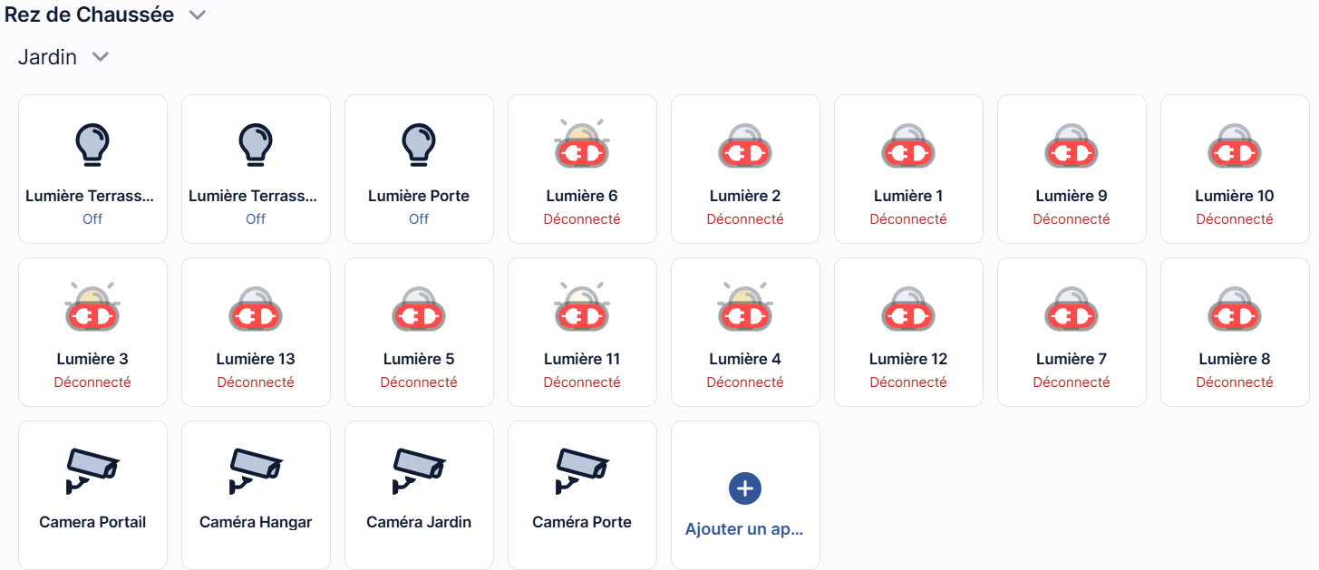 les modules avec un bloc rouge sont mes modules zigbee. j'en ai d'autres sur d'autres pièces qui sont dans le même état.