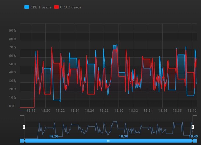 Nico Posté(e) il y a 1 heure Signaler Posté(e) il y a 1 heure Hello. Pour creuser des questions : -Quand elle "se fige", cela revient tout seul ou tu reboot ? -Tes processeurs me paraissent très utilisés, tu as quoi qui consomme autant ? Surtout au moment des plateaux qui restent hauts ? -Quand elle "se fige", tu arrives à y accéder mais tout est lent sur l'interface ou seulement au niveau ZWAVE ?